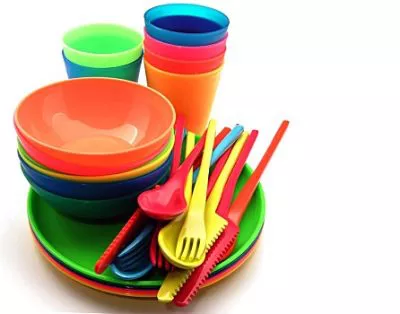 This includes disposable plastic bowls, plates, large platters, forks, spoons, teaspoons, knives and chopsticks, and even some disposable tableware sold with ice cream and salad wraps.