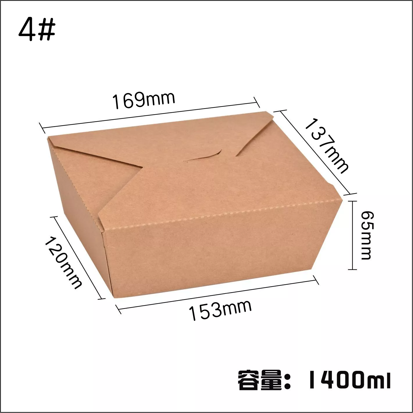 4#Disposable Compostable Kraft Paper Food Take Out Boxes